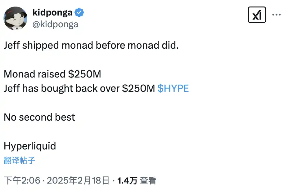 而在 Hyperliquid 自身所在的 DeFi 领域,高频交易对区块链的实时性能要求日益凸显。这一赛道中,Monad 一直被视为 Hyperliquid 的竞争对手。这一次,Hyperliquid 在 Monad 还没有发布测试网之前就已推出其 EVM。而 Monad 呢?尽管市场呼声很高,但却甚至迟迟还未发币。面对 Hyperliquid 这波操作,Monad 简直连出拳反击的机会都没有,反而被早早吸走了一波市场关注度和流动性。