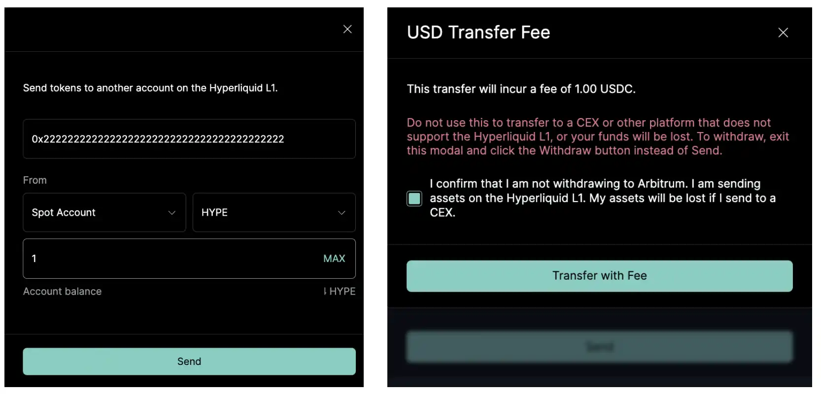 之后,点击「Send」按钮,在地址栏中输入以下地址:0x2222222222222222222222222222222222222222。最后,输入金额并点击「Send」即可完成操作。