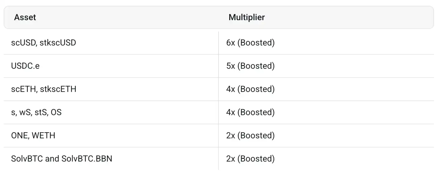 $S 代币目前为完全流通供应,由于没有 VC 份额,所以没有稀释隐患。而当前接近半数的流动性已被锁定「31% 的总供应量在质押+5-10% 的$S 锁定在 DeFi 协议中」。假设 6 个月后空投 50%,那么估算该时间段内的平均积分 TVL 则为当 TVL$300M 时获得额外 20% APR,$500M 时获得额外+12.5% APR。