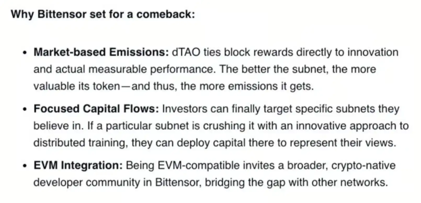 上个月,在我个人对 2025 年的预测中,我写道 Bittensor 可能会迎来复兴: