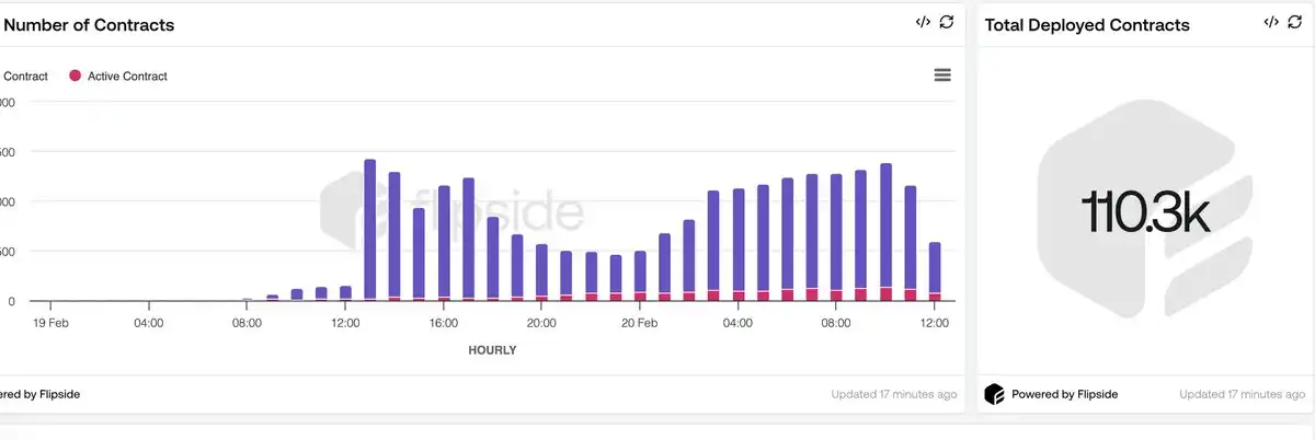 平均每小时新增 5,000-6,000 个合约,目前活跃合约数量为 500 个,显示出网络的强劲活跃度。
