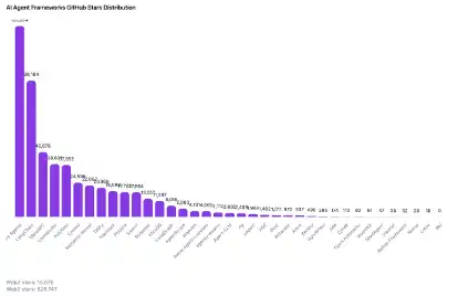 在项目受欢迎程度上,GitHub Stars 的分布揭示了 JavaScript 和 Python 在 AI 代理框架开发中的重要地位。JS Agents 和 LangChain 是最受欢迎的项目,显示出 AI 与加密货币结合的趋势正在受到广泛关注。虽然 Web3 项目的 Stars 数量远低于 Web2 项目,但一些 Web3 项目如 MetaGPT 依然表现不凡,赢得了开发者的认可。整体来看,Web3 项目虽处于追赶阶段,但随着技术的进一步成熟和生态扩展,其在未来市场中的地位有望稳步提升。