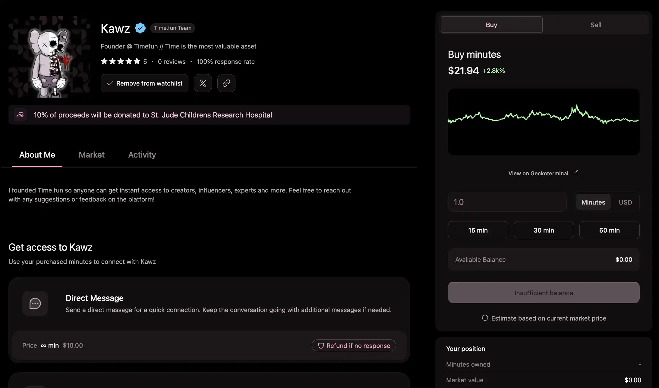 代币:Kawz's minutes。作为 time.fun founder 发行的代币,平台关注度越高,代币的价值越有可能水涨船高。