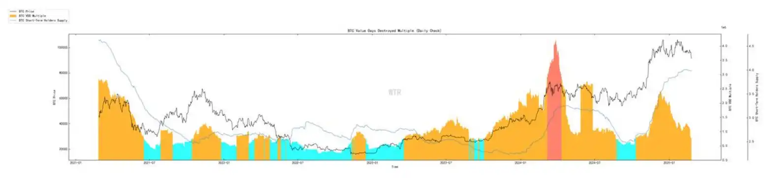 1. 市场跌破短期投机者成本线,可能出现惜售,进⼀步减少市场抛压;