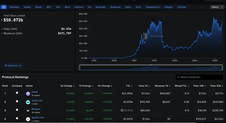 AAVE 是加密市场最大的借贷协议,TVL230 亿美元,一年产生 4.5 亿美元收入,代币 100% 流通,目前市值 33 亿美元。