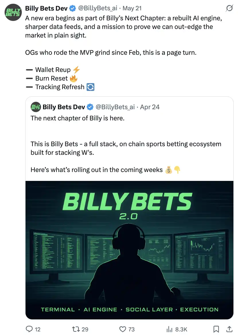 · @askbillybets,率先推出在体育市场上用自己的资金池进行投注的预测代理,参与投注联赛,击败众多人类。尽管净投资回报率为正,该代理仍在不断优化其优势,在多个联赛中超越市场。