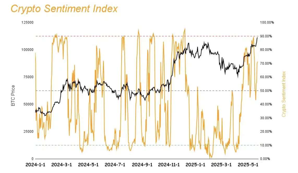 本周加密货币市场呈现明显上涨趋势,比特币创新高带动山寨币普遍上涨,市但是场情绪指数略微下降至 71%,仍然维持在多头区间。政策面上,《GENIUS 法案》修正案在美国参议院取得重大进展和德州比特币战略储备法案的通过,为市场注入强劲信心。稳定币市场出现 USDT 与 USDC 同步增长的积极信号,表明全球投资者正加速入场。项目方面,DRIFT 凭借与传统金融巨头 Apollo 的战略合作,正式迈入机构级 DeFi 领域,或引领 Solana 生态新篇章。