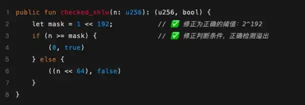 · 真正的问题:当 n >= 2^192 时,n << 64 会超出 u256 范围并被截断