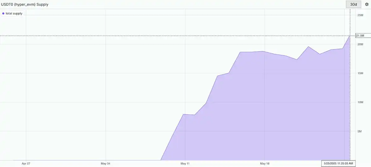 USDT0 在 HyperEVM 上的供应量自上线以来的变化 - Purrsec
