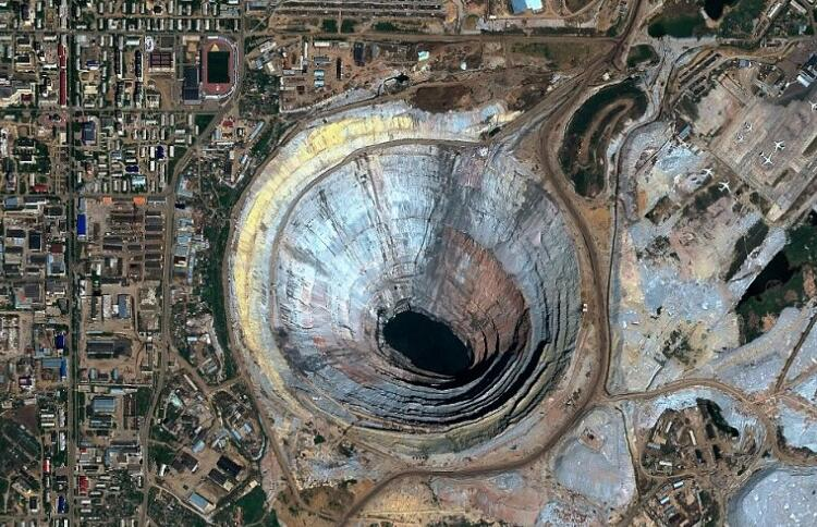 也正是因为开采钻石,所以在当地还出现了城市。这座城市用的就是钻石矿场的名字,也叫作米尔内。不过可惜的是,钻石并没有为这座城市带来富庶,反而成为了当时苏联最穷的地区。如今这个洞口直径达到1200米的大矿坑,因为坑洞上方的特殊气流,导致体形较小的飞机容易在这里坠毁,目前已经被废弃了。