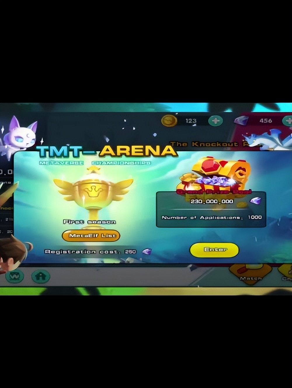 玩家参加 TMT(斗技场)需付款 “试炼场门票费” 和 MELT,斗技场也是 MetaElfLand(元灵大陆)一项开拓性的游戏玩法,参加斗技场的玩家并非应用自身的NFT作战,反而是系统软件分派NFT参加(NFT特性任意分派),此项游戏玩法也是中后期融合到实际游戏网络服务器后与链下玩家互动交流的插口;