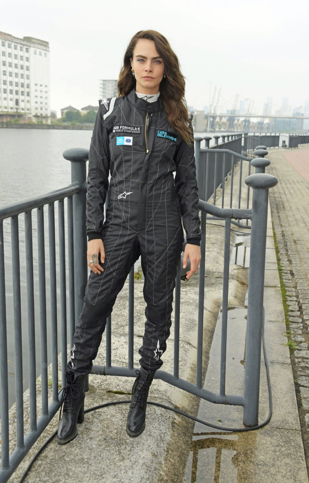 卡拉在此次晚宴上的造型也是很多变,随后在游轮上,卡拉把黑色的头发扎成高马尾,把黑色单肩短上衣换成了带有彩色花纹亮片的短裙,专业赛车服换成了黑色皮衣外套,整个人看上去非常干练,展示了自己非凡的时尚魅力。