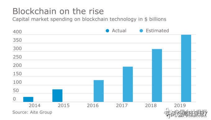 资本市场在区块链技术上的花费(单位:十亿美元)