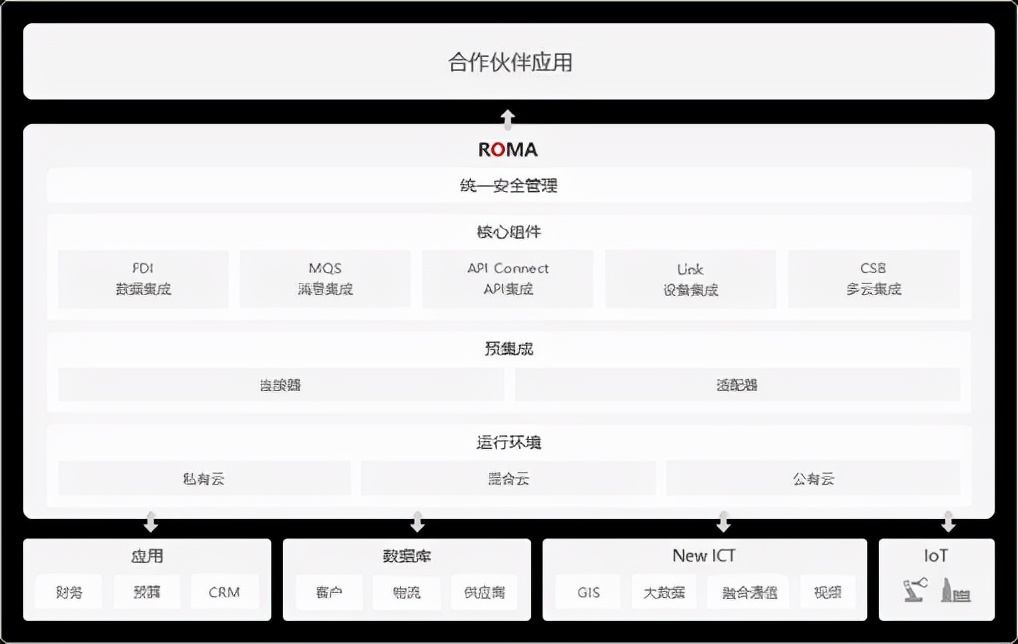 华为通过ROMA融合集成平台,已可以做到16个流程域、2200个以上的应用系统间协同、30000个以上的集成功能点、2.3亿次日均运行任务、以及140亿日数据流量。